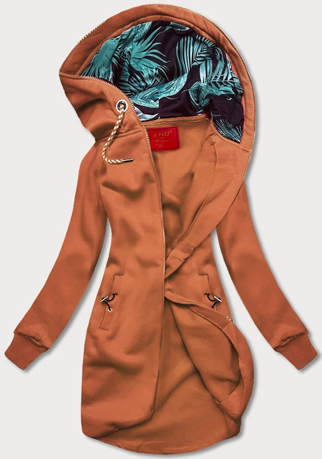 Mikina je vypasovaná, uvnitř má příjemný polar (fleece), má dvě kapsy a zapíná se zipem. Rukávy jsou olemované stahovacími lemy. Spodní část modelu je asymetrická. Model má vzadu délku nad kolena.