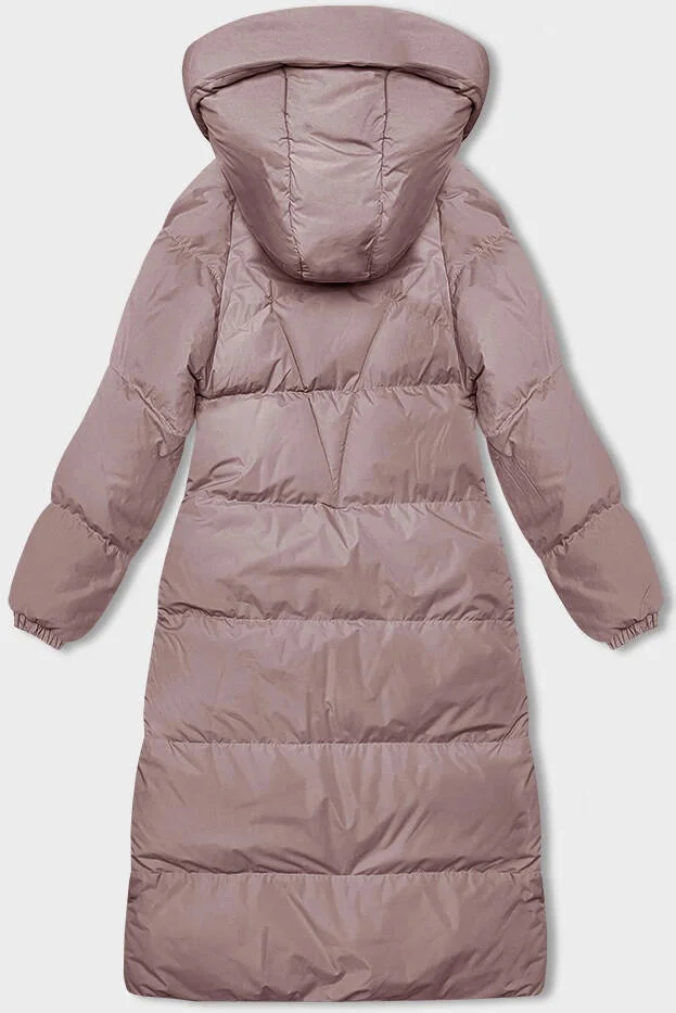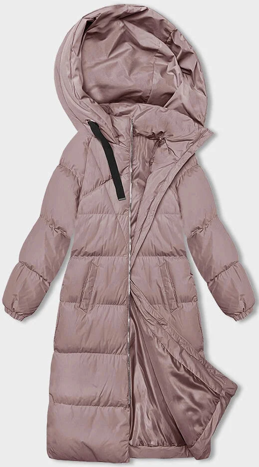 Dlouhá růžová hrubší dámská bunda s kapucí (5M3163-46)