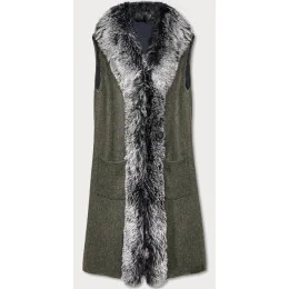 Dlouhá vesta v khaki barvě s kožešinou (F51010-4)