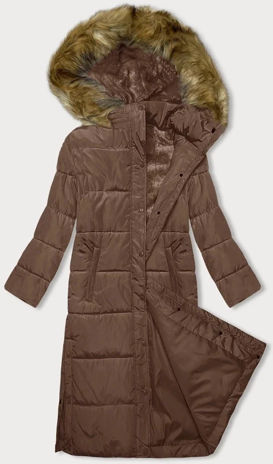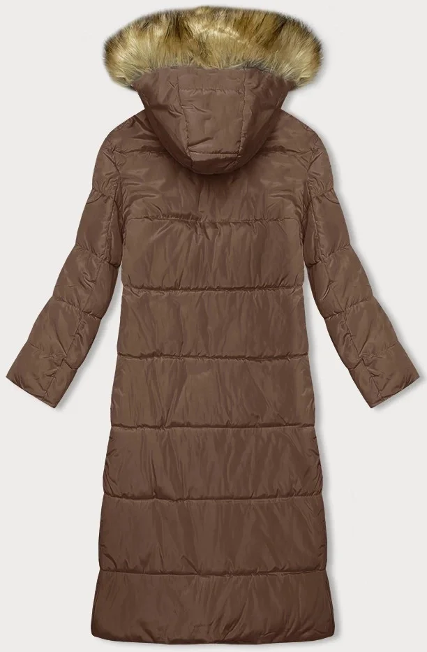 Dlouhá zimní bunda ve velbloudí barvě s kapucí (V726)