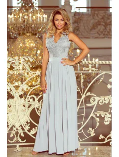 Přidání recenze k Dlouhé dámské šaty ve stříbrné barvě bez rukávů a s vyšívaným výstřihem model 6405966