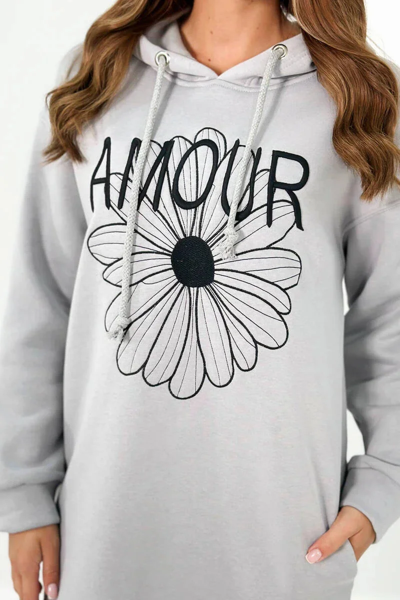 Dlouhé izolované šaty s výšivkou šedý