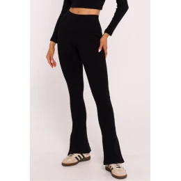 Legíny z žebrovaného bavlněného úpletu pro pohodlný a stylový vzhled. Přizpůsobený střih perfektně sedí na postavě a elastický pas zajišťuje pohodlné nošení po celý den. Nohavice jsou ve spodní části mírně rozšířené a zakončené jemnými bočními rozparky, které jim dodávají módní nádech. Tyto legíny, navržené a ušité v Polsku, kombinují funkčnost s moderním designem a jsou ideální pro každodenní styling.