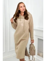 Dlouhé model 18966324 šaty s výšivkou světle béžová - K-Fashion