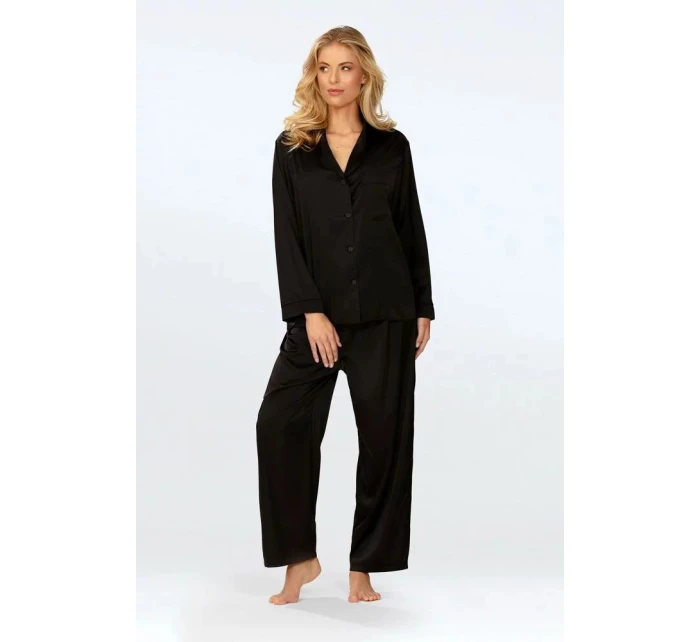 Dlouhé saténové pyžamo Amina černé - DKaren