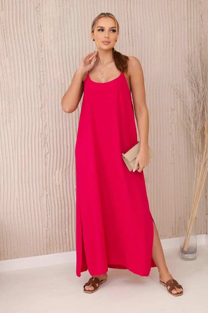 Dlouhé šaty bez ramínek fuchsie