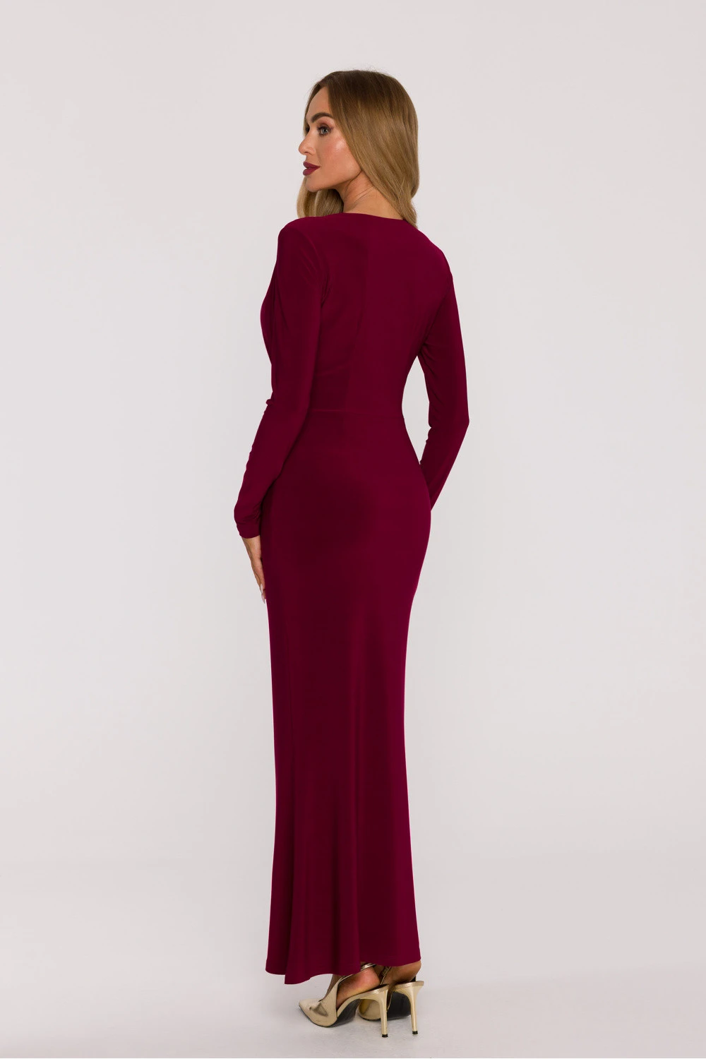 Elegantní a mimořádně ženské maxi šaty vyrobené z hladké pleteniny, která okouzluje svou měkkostí, pružností a pohodlným nošením. Materiál se krásně přizpůsobuje postavě, aniž by omezoval pohyb. Model je zdoben výstřihem ve tvaru písmene V, který jemně zdůrazňuje linii krku a dekoltu, a dlouhými, přiléhavými rukávy, které dodávají celku elegantní charakter. Pás s jemným záhybem zdůrazňuje ženské tvary, zatímco dlouhé, mírně rozšířené dno vytváří smyslnou a štíhlou linii postavy. Další výhodou je samostatný šátek, který lze stylovat různými způsoby - uvázat kolem krku, v pase nebo použít jako ozdobu do vlasů. Šaty nemají kapsy ani podšívku, což zajišťuje jejich lehkost, a skrytý zip na boku zaručuje pohodlné oblékání a estetické provedení. Model byl navržen a ušit v Polsku s důrazem na každý detail. Je to nabídka pro ženy, které oceňují minimalistickou eleganci, pohodlí a nadčasový styl.