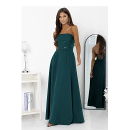 Oslnivý dlouhý večerní šaty bez ramínek, vytvořený s ohledem na výjimečné příležitosti. Vrchní část šatů je zdobena jemným pásem třpytivých flitrů, které krásně zdůrazňují pas a dodávají kreaci eleganci. Model má efektní rozpark na noze, který dodává celku lehkost a smyslný charakter. Na zádech šatů je stylové šněrování, díky kterému ji dokonale přizpůsobíte své postavě, užitečný je také skrytý zip na boku. V sadě jsou také dodatečné ramínka k připojení, což umožňuje nosit je dvěma způsoby, buď klasicky nebo s jemným podpětím ramen. Šaty ROSSANA jsou skvělou volbou na bály, svatby, plesy nebo elegantní večírky. Nastavitelný obvod hrudníku a pasu (guma pod šněrováním).
