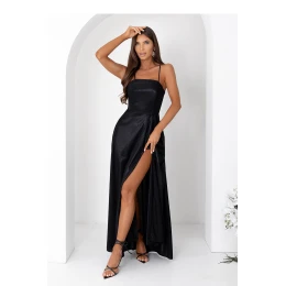 Elegantní dlouhé šaty s ženským a elegantním charakterem, ideální na speciální události a letní výlety. Model přitahuje pozornost rozřezáním vpředu, které jemně zdůrazňuje nohu a dodává stylizaci lehkost a smyslnost. Šaty mají pásky přes ramena a šněrování na zádech, které není pouze dekorativním prvkem, ale také praktickým řešením, umožňujícím ideální přizpůsobení postavě. Další výhodou je možnost připevnění dalších ramínek (nejsou součástí balení), což dává větší svobodu ve stylizaci a nošení. Model také nabízí regulaci v pase a na hrudi, zajišťující pohodlí a individuální přizpůsobení. Jedná se o skvělý návrh pro ženy, které oceňují spojení elegance, funkčnosti a moderního designu. Šaty se skvěle hodí na večírky, slavnosti a dovolené večery.