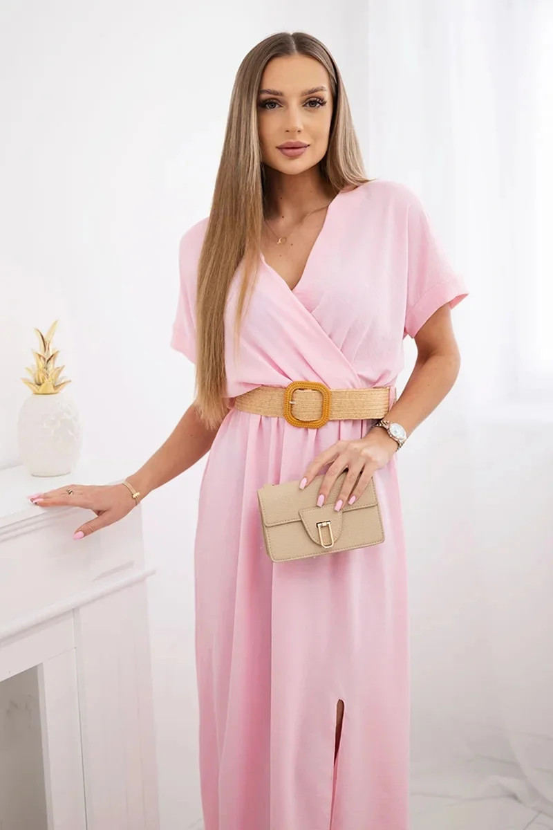 Dlouhé šaty s ozdobným páskem bonbónově růžová