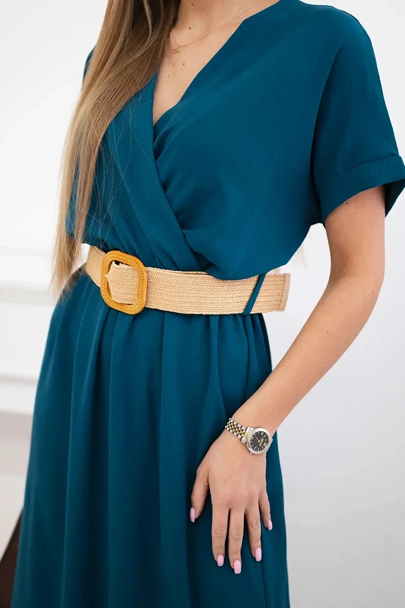 Představujeme vám pohodlné šaty s ozdobným páskem. Šaty mají dole rozparky. Šaty jsou vyrobeny z vysoce kvalitního materiálu. Velmi zajímavá nabídka pro všechny dámy. Velikost je univerzální a vyhovuje dámám, které nosí velikost S, M nebo L.