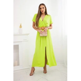 Dlouhé šaty s ozdobným páskem neonově zelená