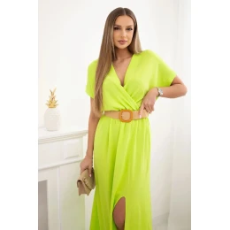 Dlouhé šaty s ozdobným páskem neonově zelená