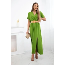 Dlouhé šaty s ozdobným páskem oliva
