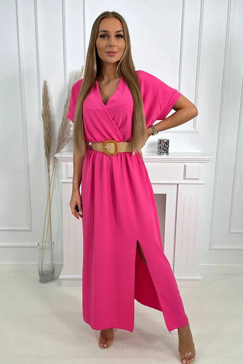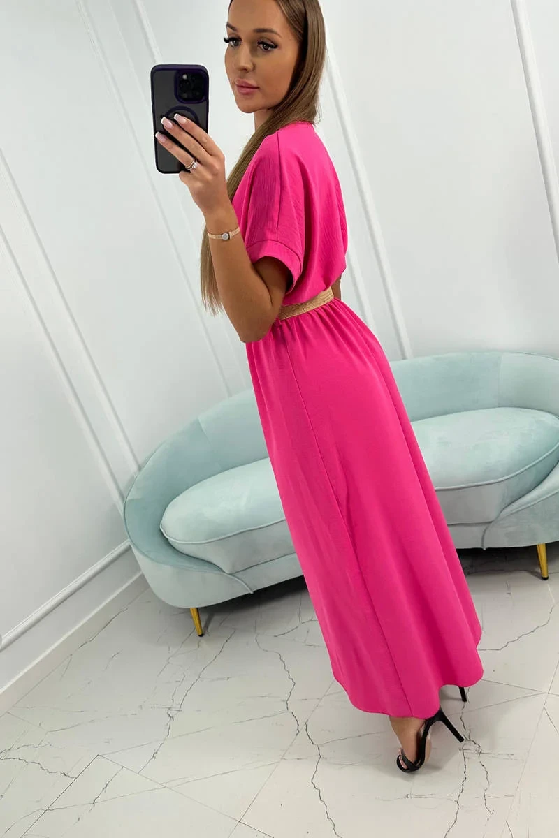 Dlouhé šaty s ozdobným páskem růžové