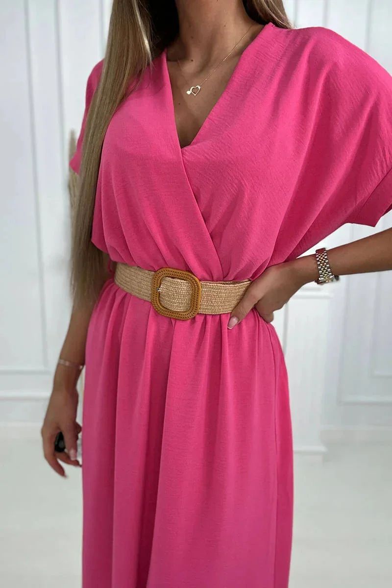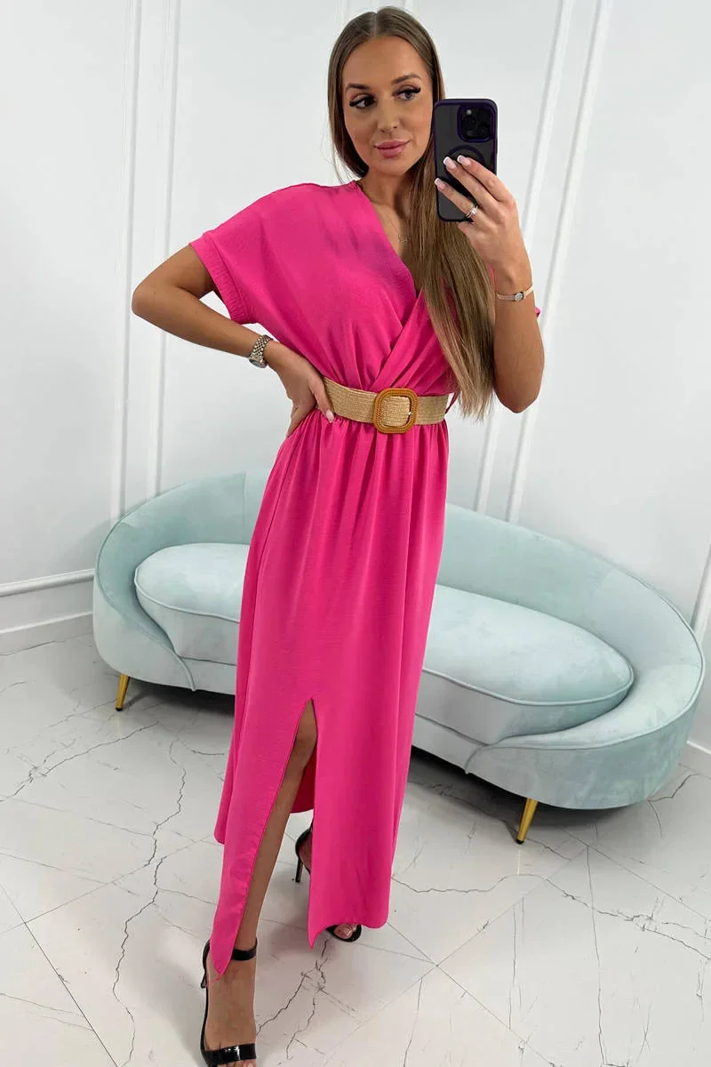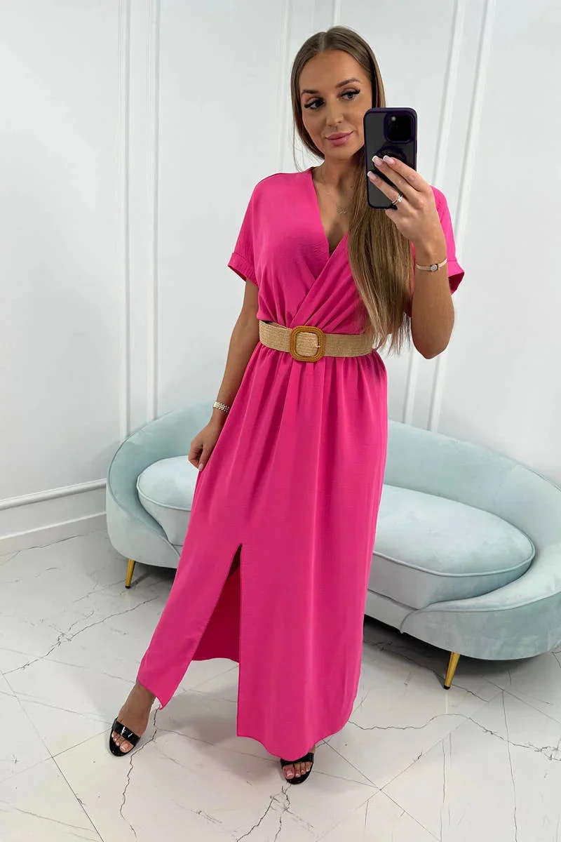 Představujeme vám pohodlné šaty s ozdobným páskem. Šaty mají dole rozparky. Šaty jsou vyrobeny z vysoce kvalitního materiálu. Velmi zajímavá nabídka pro všechny dámy. Velikost je univerzální a vyhovuje dámám, které nosí velikost S, M nebo L.