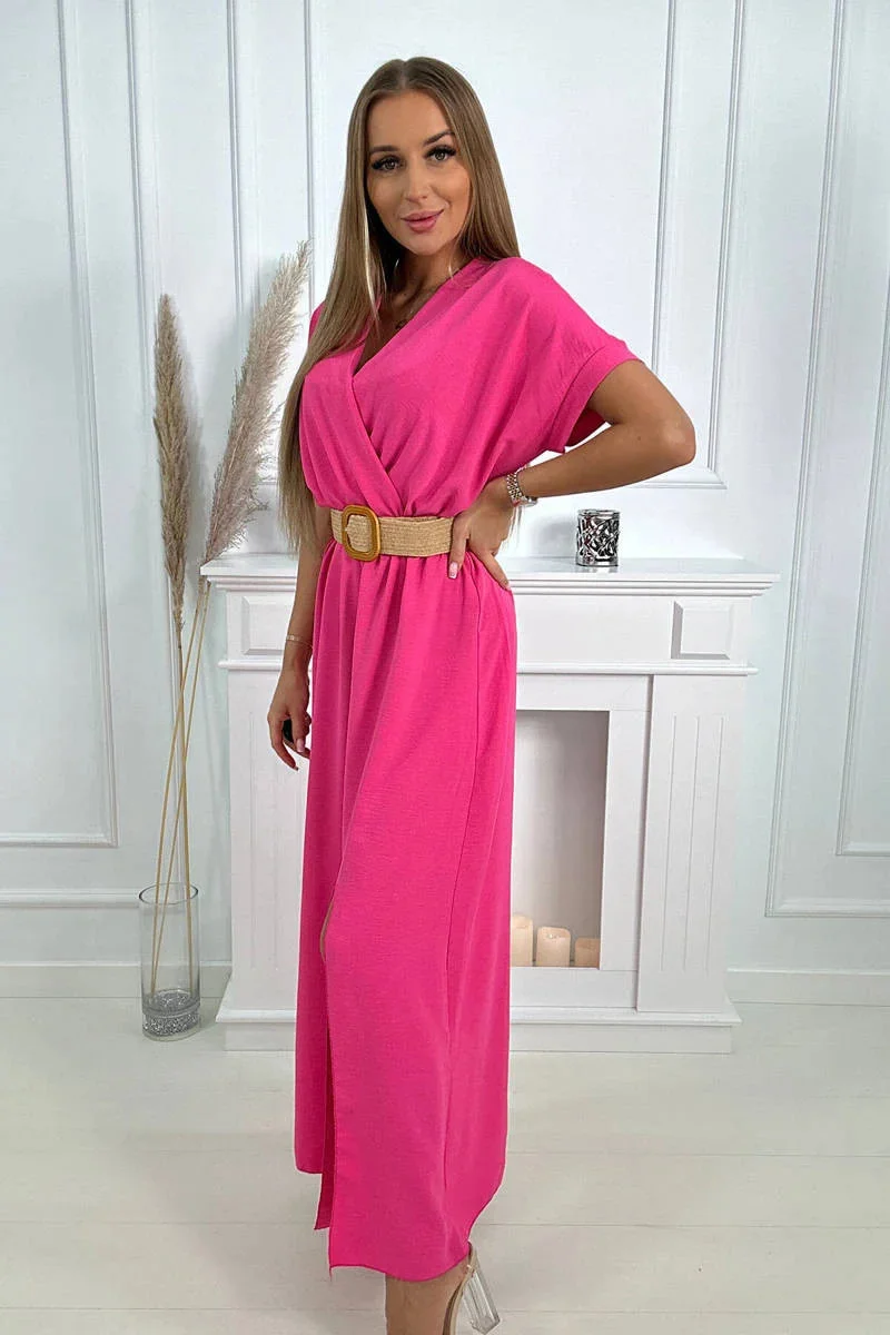 Přidání recenze k Dlouhé šaty s ozdobným páskem růžové