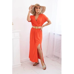 Dlouhé šaty s ozdobným páskem tmavě oranžová