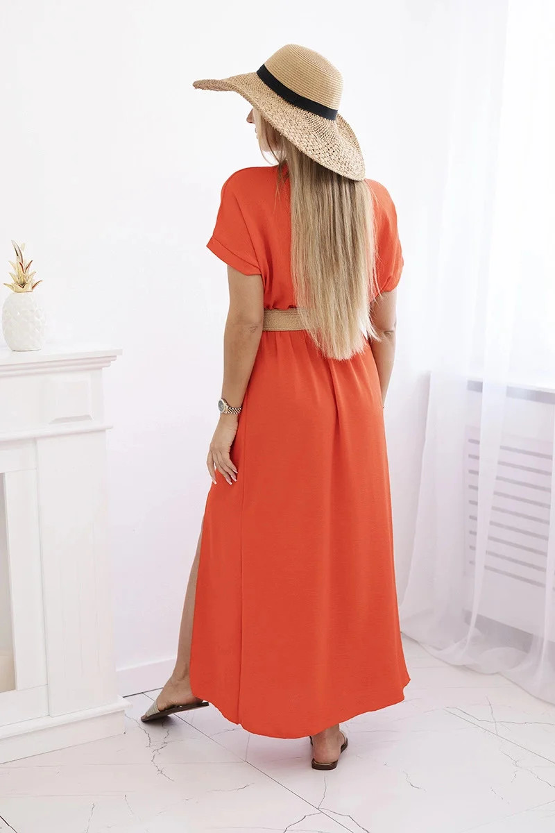 Dlouhé šaty s ozdobným páskem tmavě oranžová