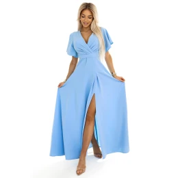 dlouhé šaty s rozparkem na rukávy a výstřihem MODRÉ model 20959370 - numoco