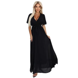 Dlouhé šaty se výstřihem a vázáním ČERNÁ model 21230934 - numoco basic