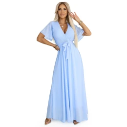 Modré šifonové maxi šaty s obálkovým výstřihem - Numoco Basic
