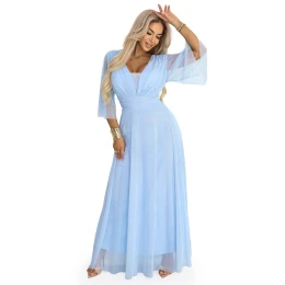 Dlouhé třpytivé plus size šaty s výstřihem a rukávy modré model 21957849 - numoco basic