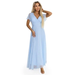 dlouhé třpytivé šaty s výstřihem a krátkými rukávy modré model 22017314 - numoco basic