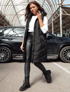 Dlouhá černá dámská prošívaná vesta (JIN219)