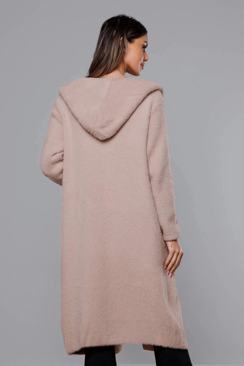 Přidání recenze k Dlouhý béžový vlněný přehoz přes oblečení typu alpaka s kapucí (M105-1)