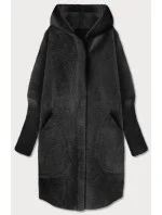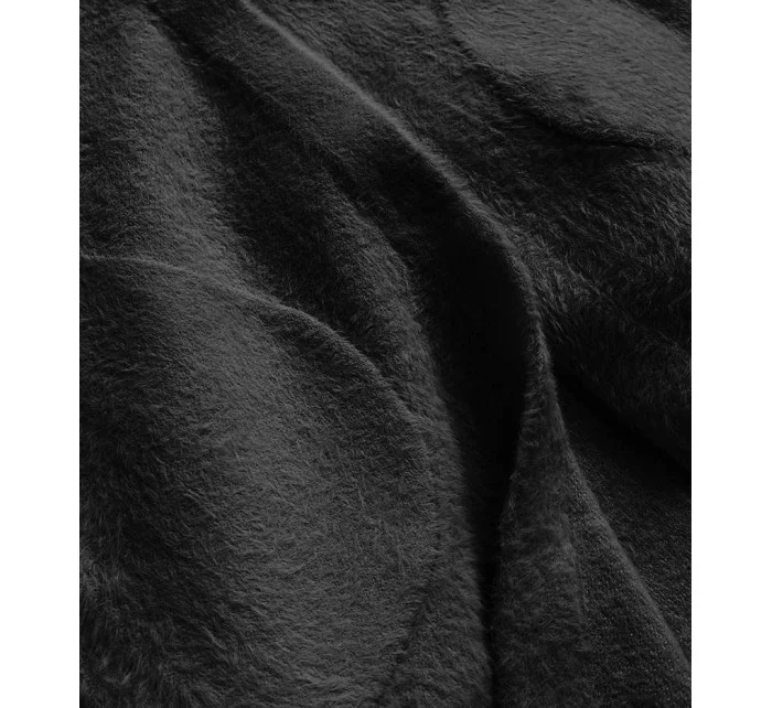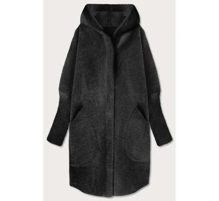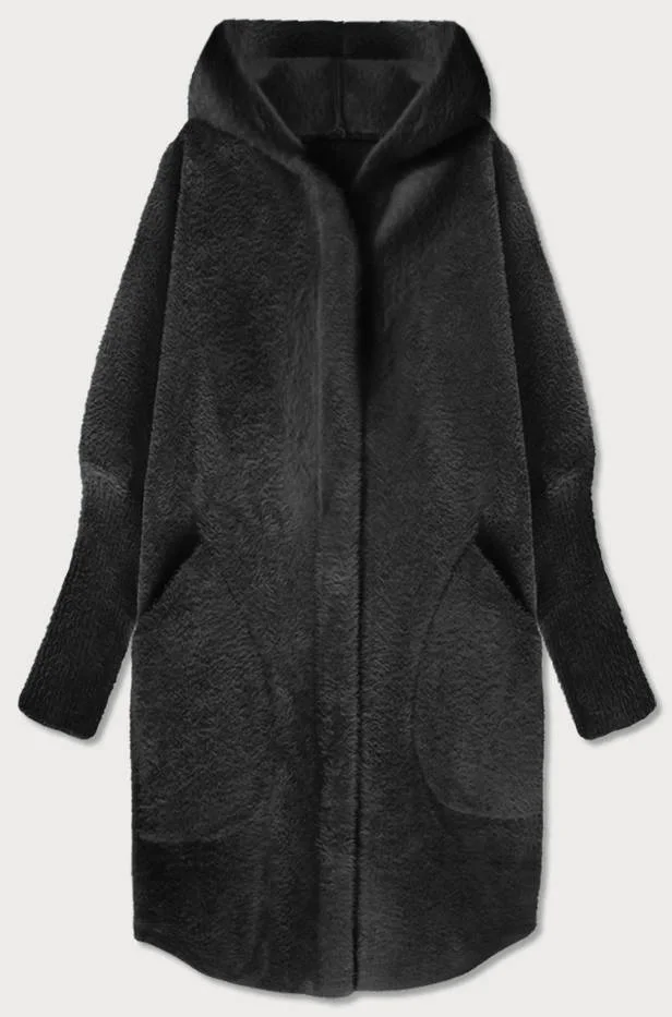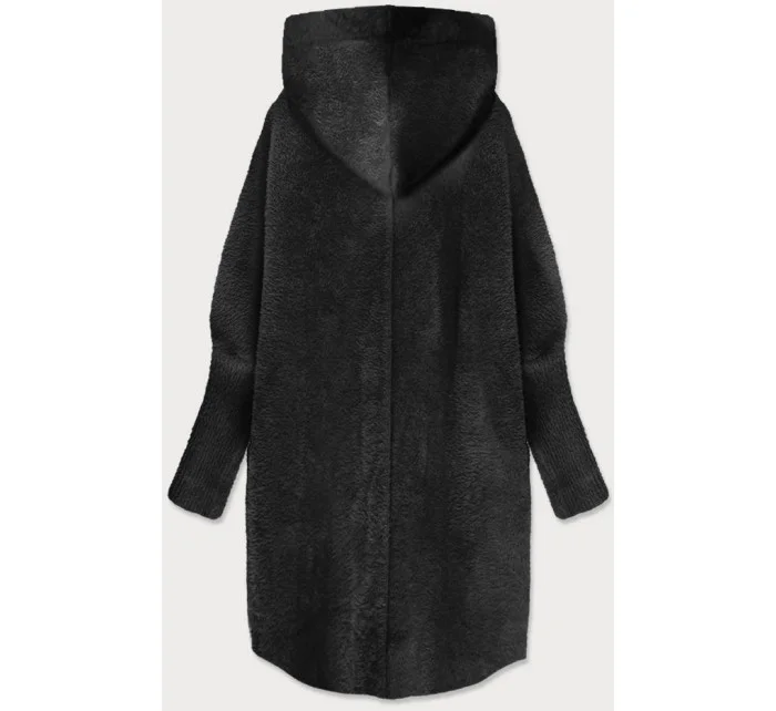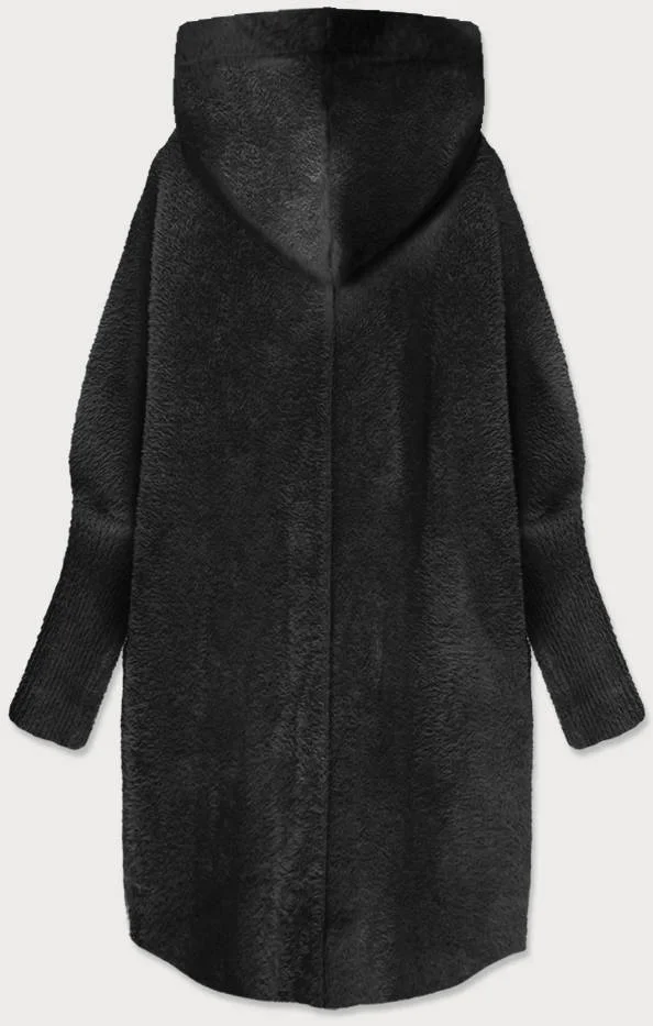 Dlouhý černý vlněný přehoz přes oblečení typu "alpaka" s kapucí model 17099716 - MADE IN ITALY
