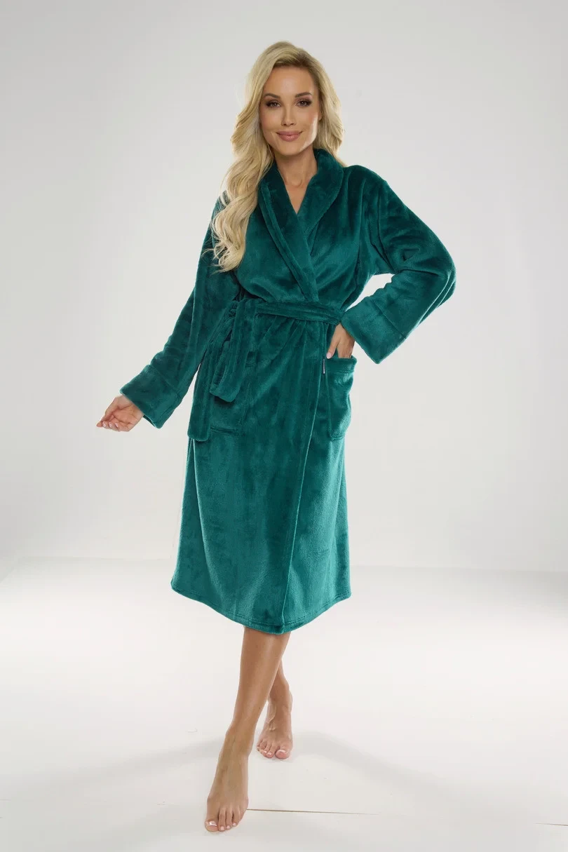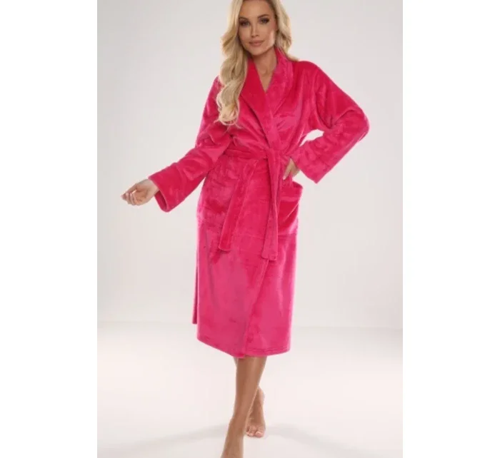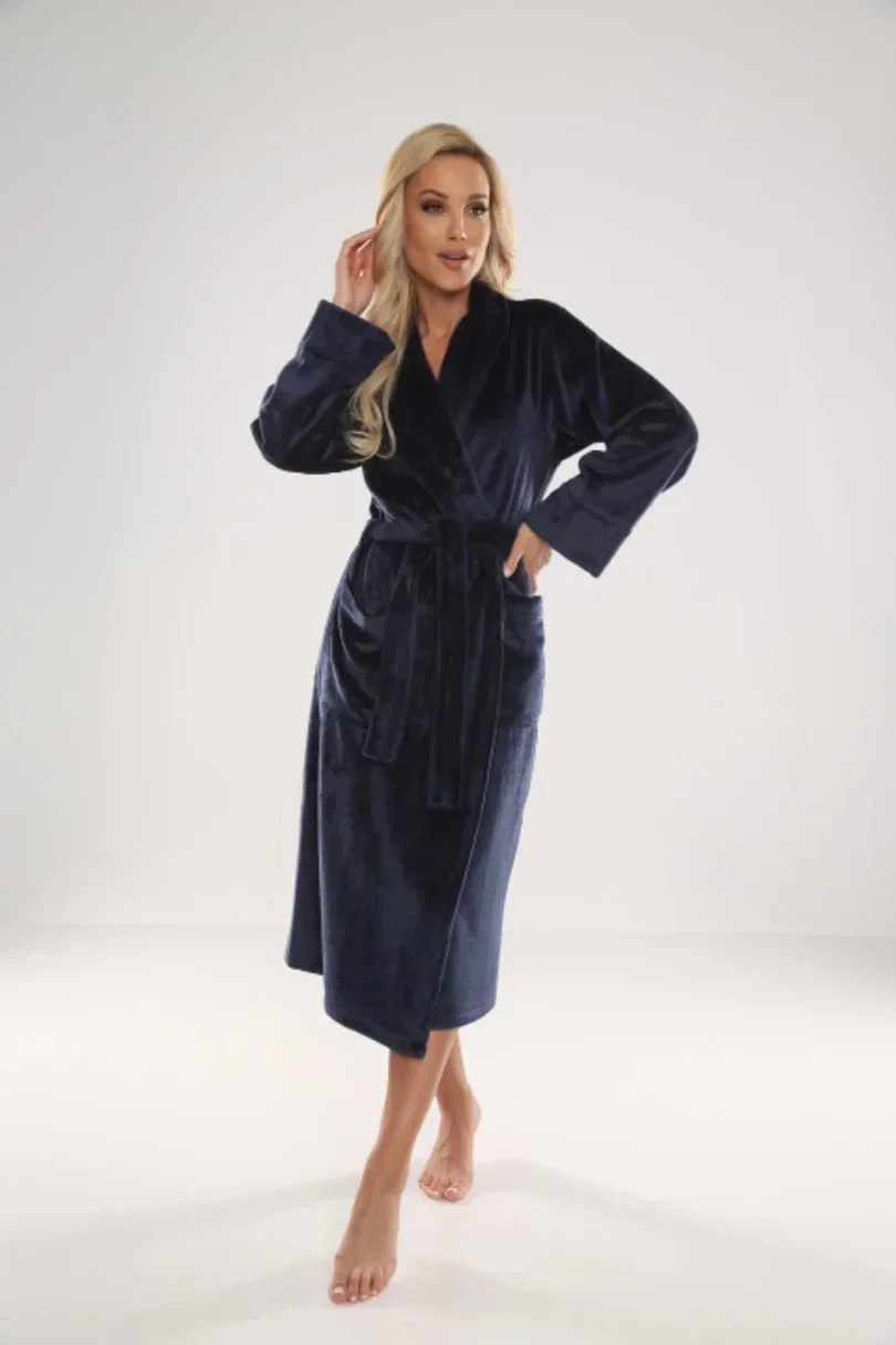 Dlouhý dámský župan, který je vyrobený z měkké tkaniny typu "soft".