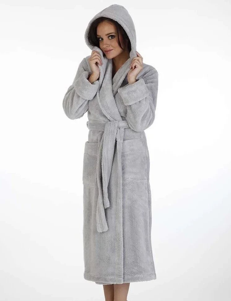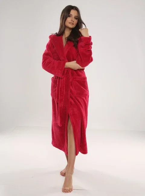 Pohodlný dlouhý dámský župan s kapucí.