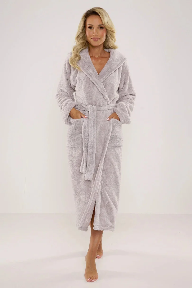 Dlouhý dámský župan s kapucí model 16115315 LUNA II - De Lafense