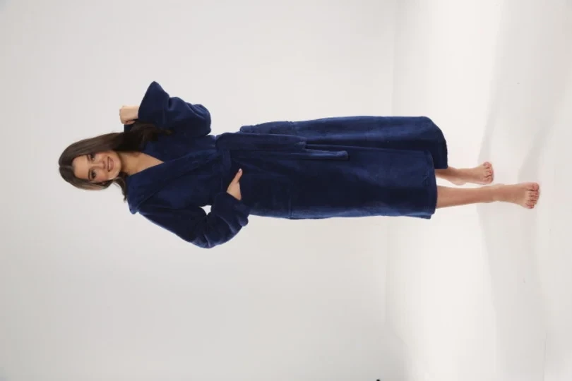 Župan je vyrobený z měkké tkaniny typu "soft". Model má kapsy a v pase se zavazuje.