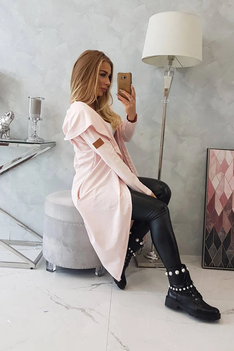 Přidání recenze k Dlouhý kabát s kapucí světle pudrově růžový
