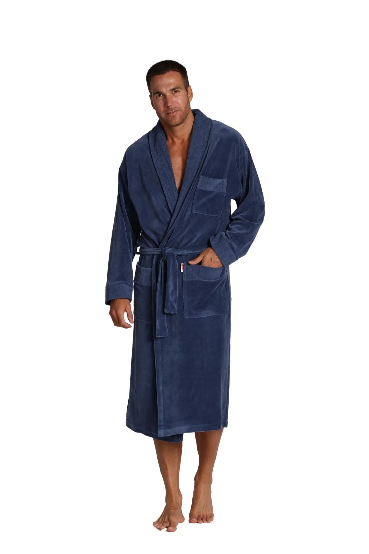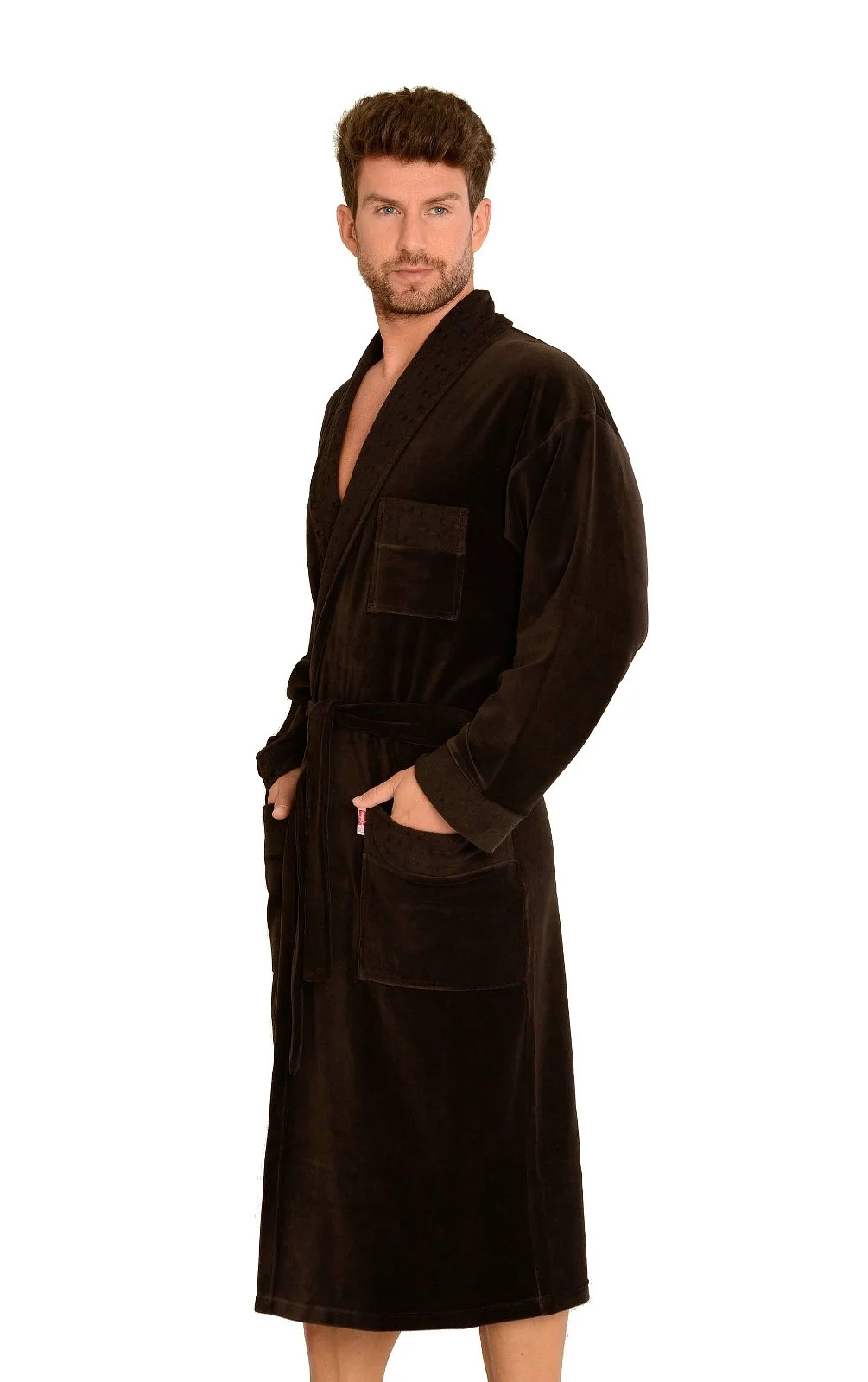 Dlouhý pánský velurový župan s límcem.