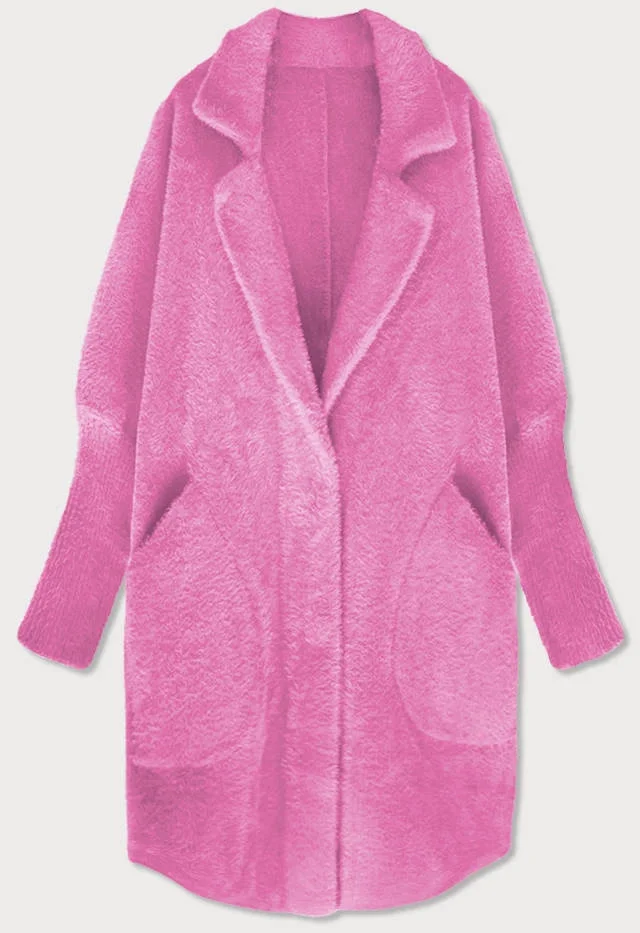 Dlouhý růžový vlněný přehoz přes oblečení typu alpaka model 17012329 - MADE IN ITALY