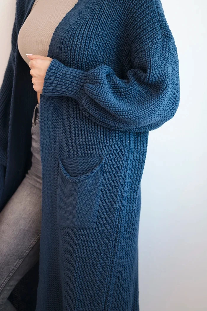 Dlouhý svetr kardigan tmavě model 21402226 - K-Fashion