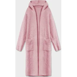 Dlouhý vlněný přehoz přes oblečení typu alpaka v růžové barvě s kapucí model 18059159 - MADE IN ITALY