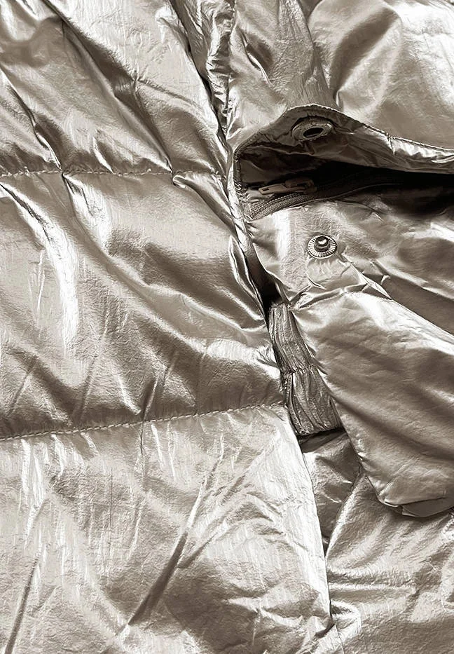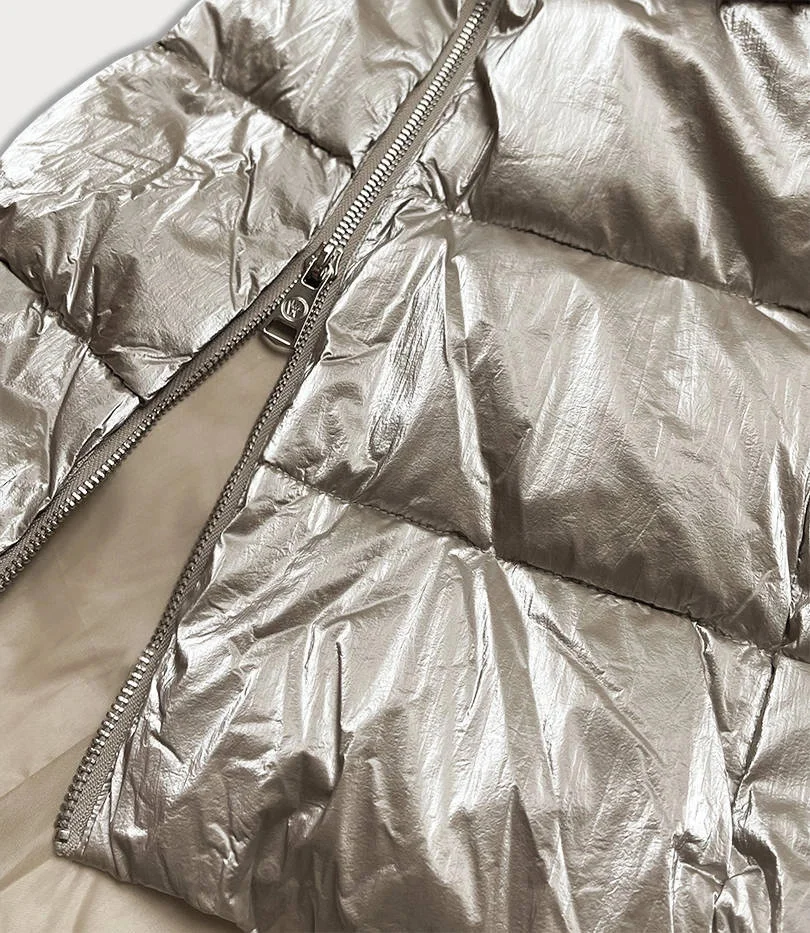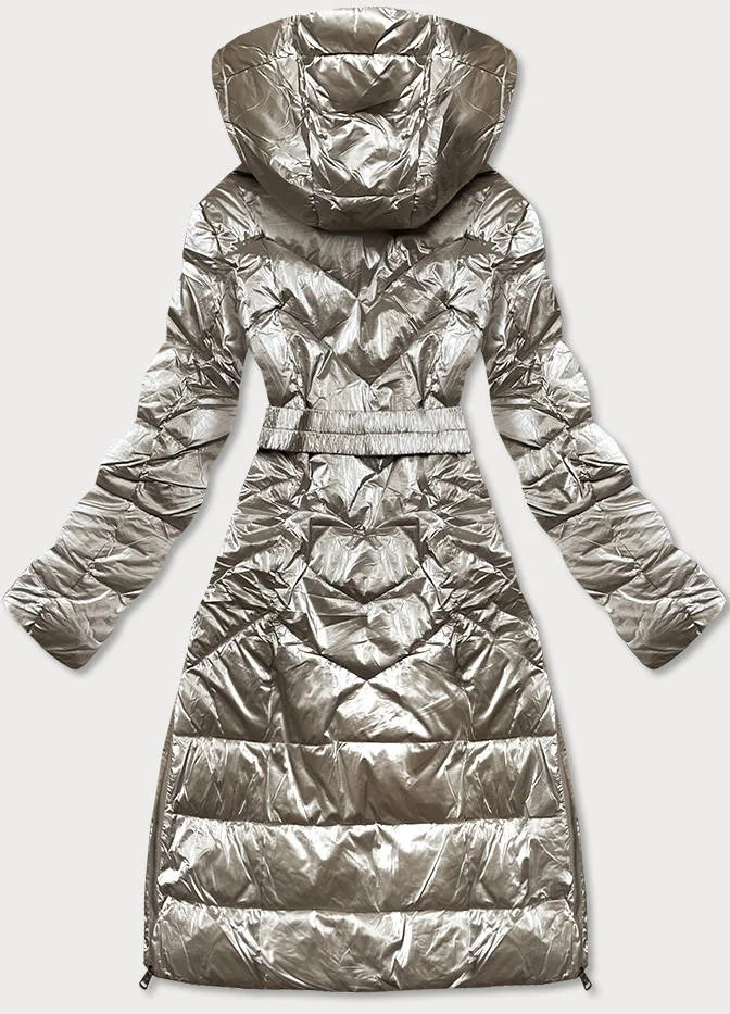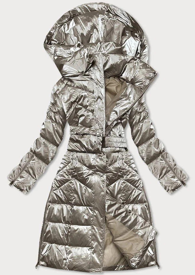 DŁUGA BŁYSZCZĄCA KURTKA ZIMOWA DAMSKA BEŻOWA (775)