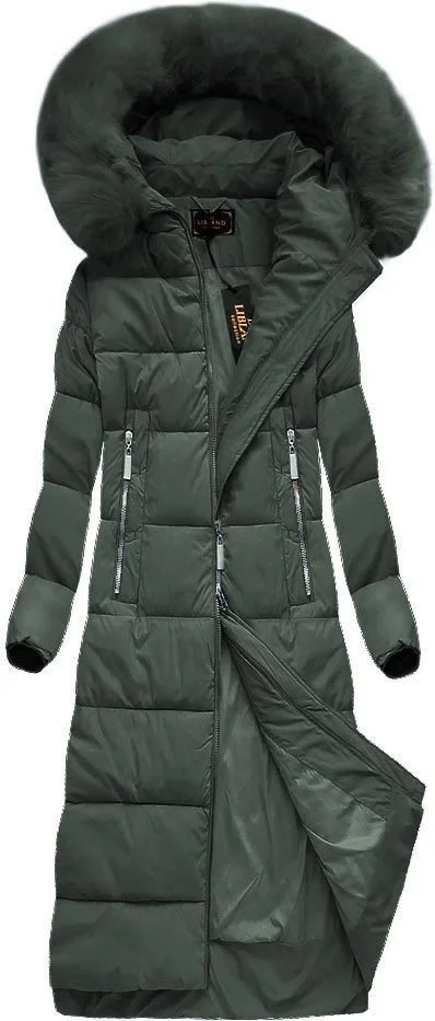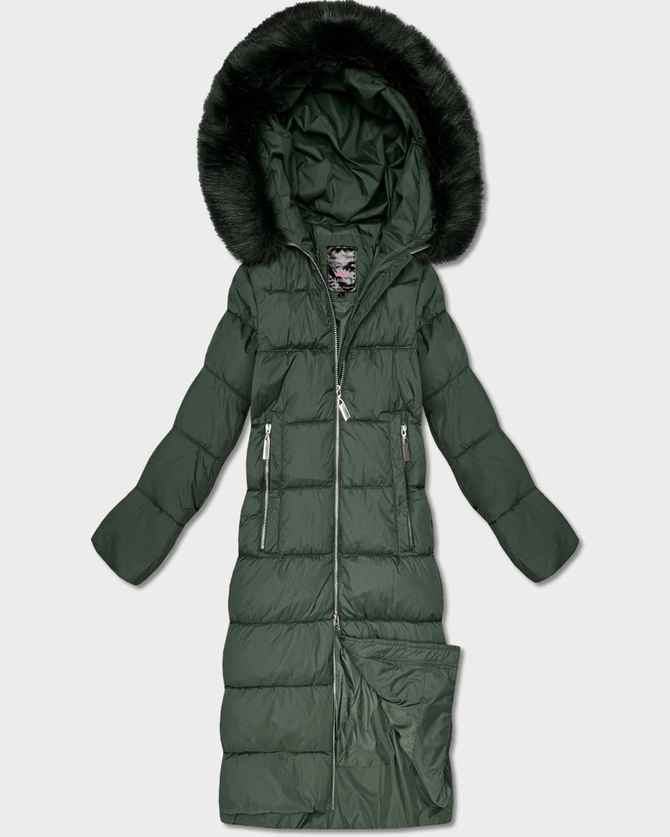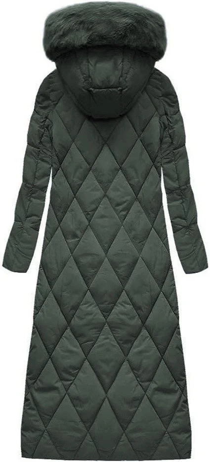 DŁUGA DAMSKA KURTKA ZIMOWA Z KAPTUREM BUTELKOWA ZIELEŃ (7688)