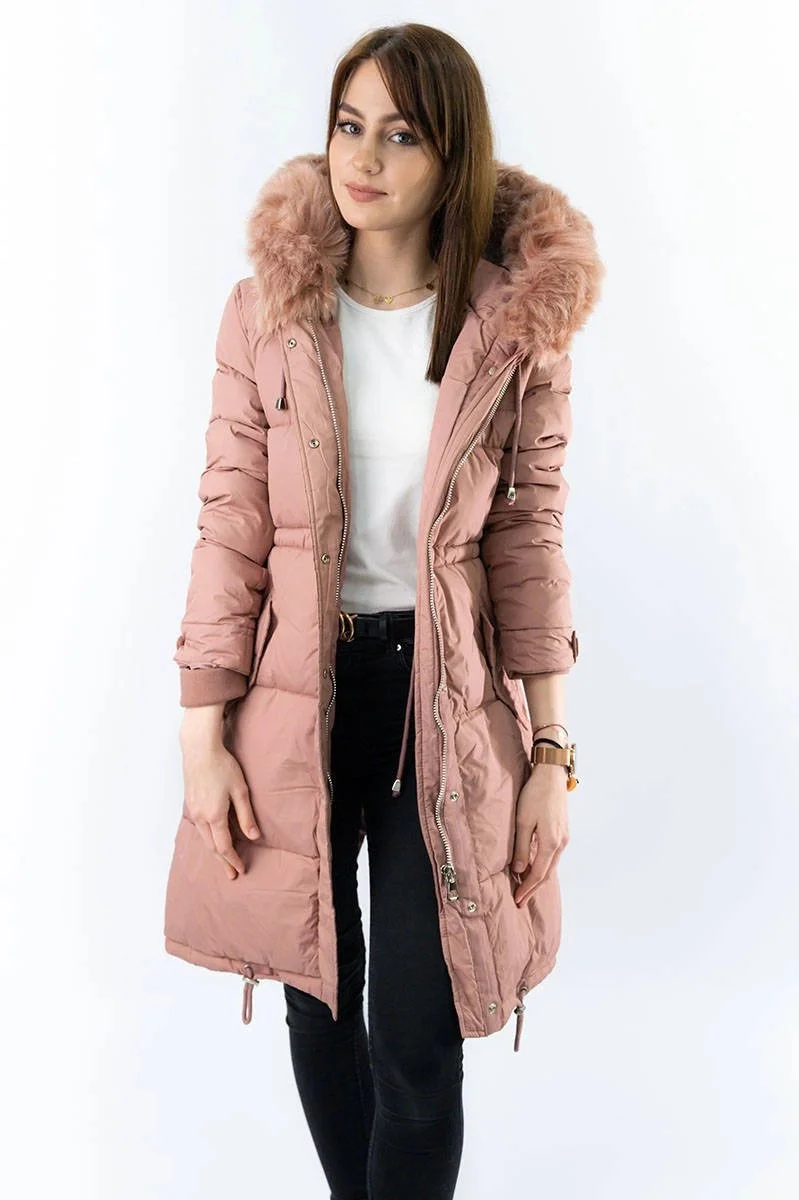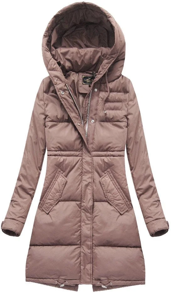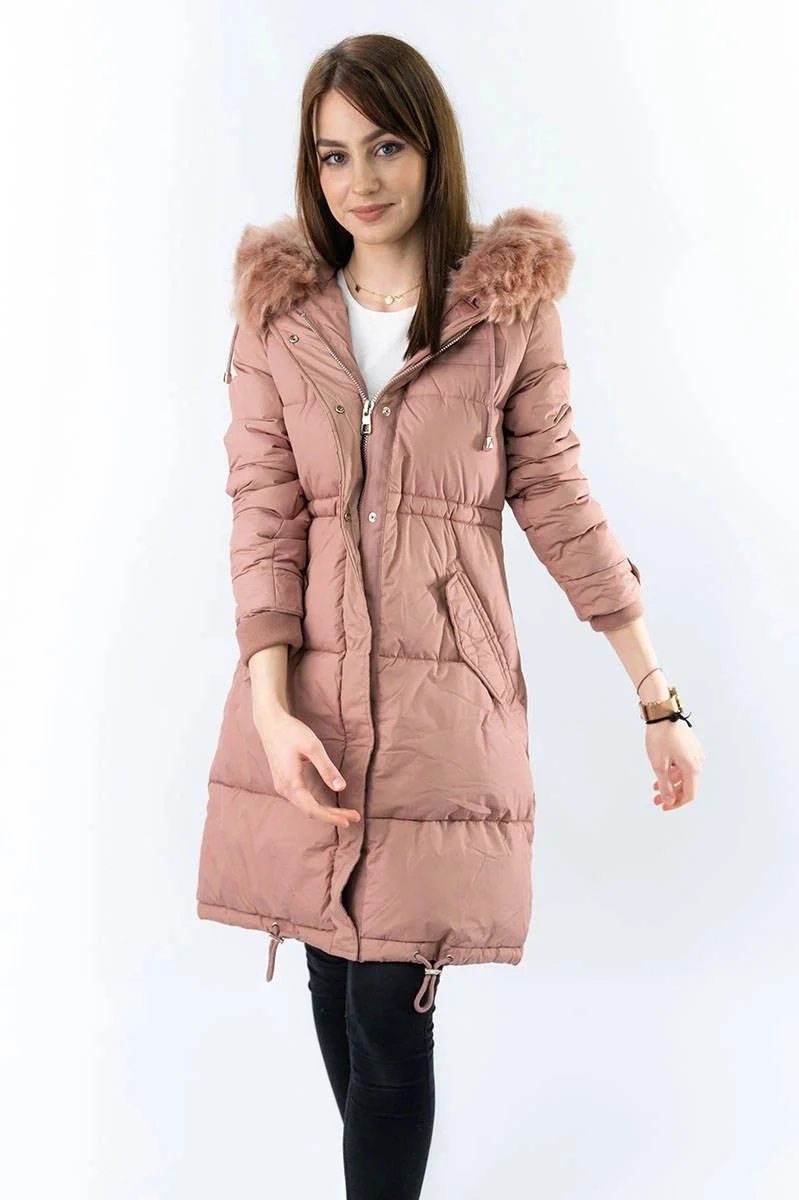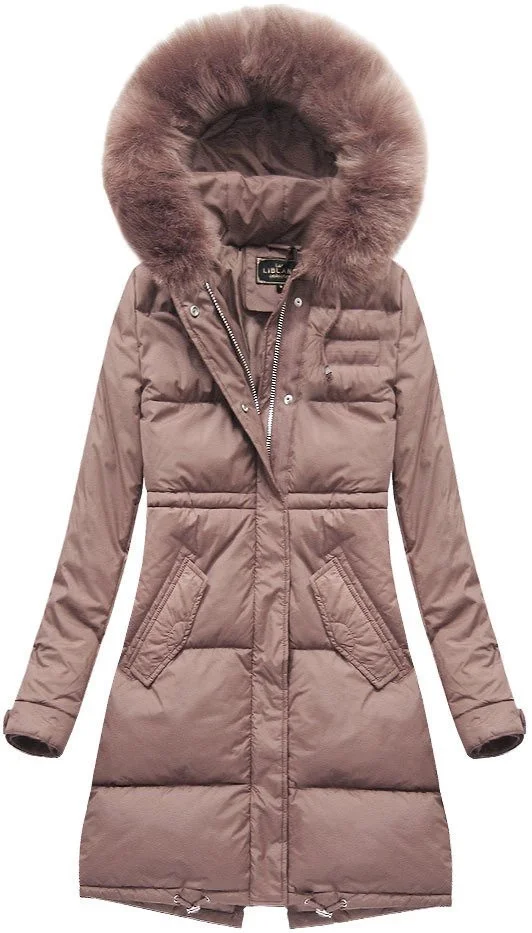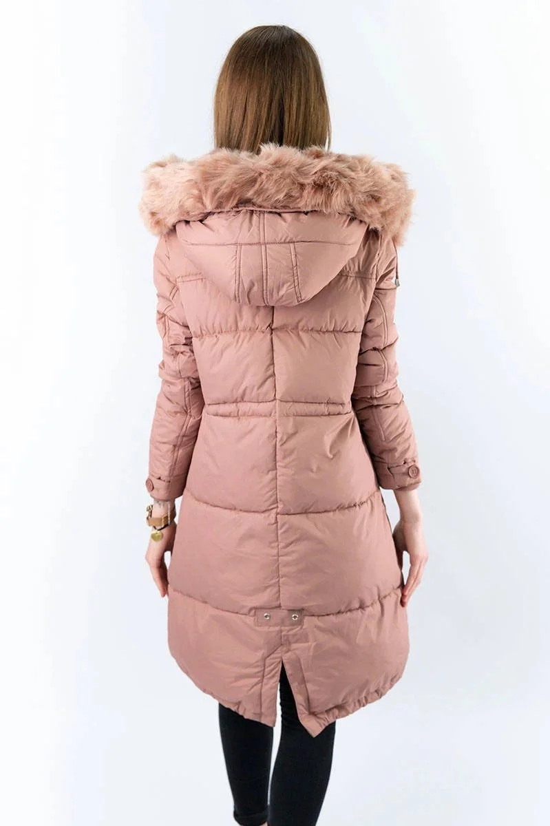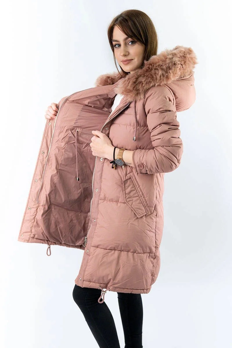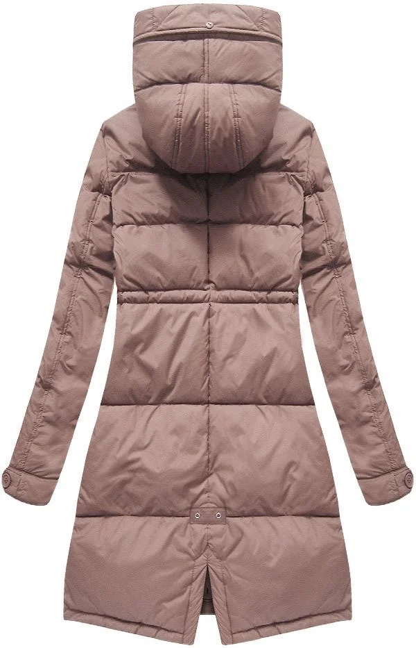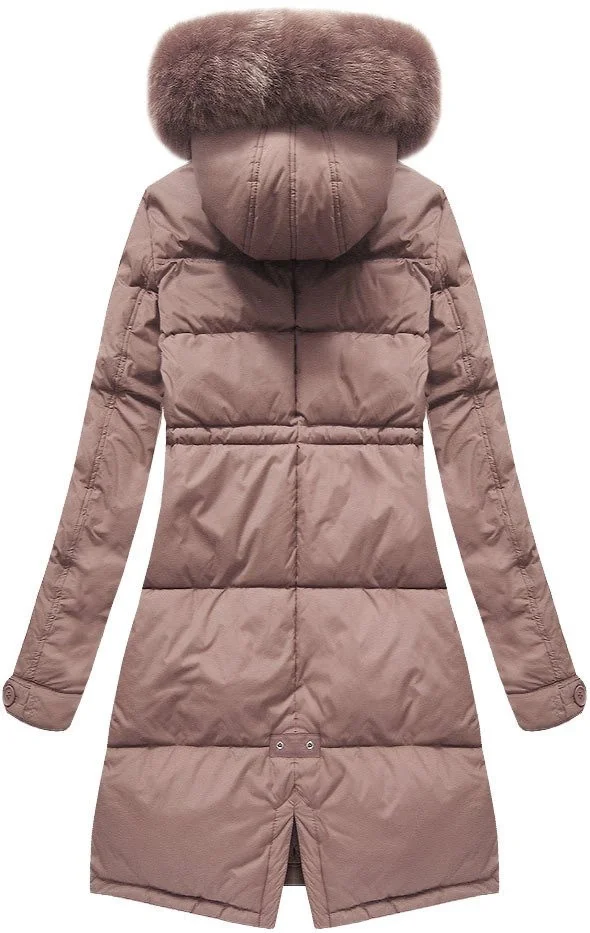 DŁUGA KURTKA DAMSKA ZIMOWA Z KAPTUREM ANTYCZNY RÓŻ (7752)