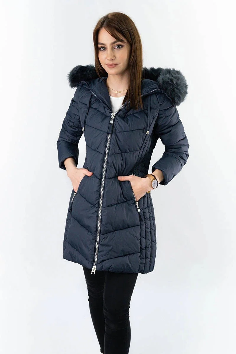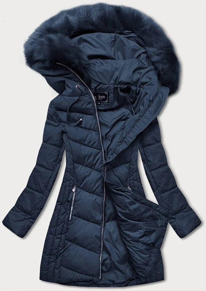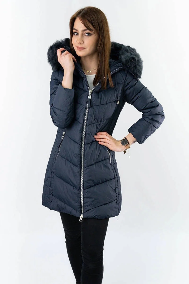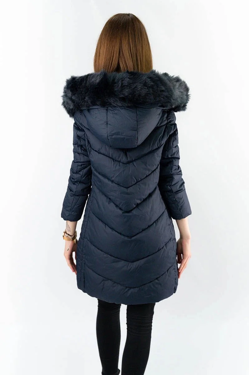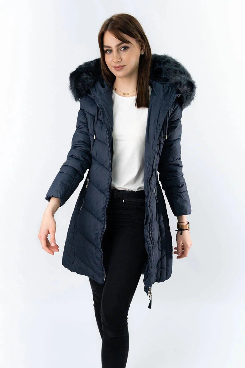 DŁUGA PIKOWANA ZIMOWA KURTKA DAMSKA GRANATOWA model 21241970 - Libland