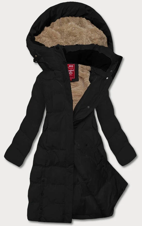 DŁUGA ZIMOWA KURTKA DAMSKA NA FUTERKU CZARNA (2M-025)