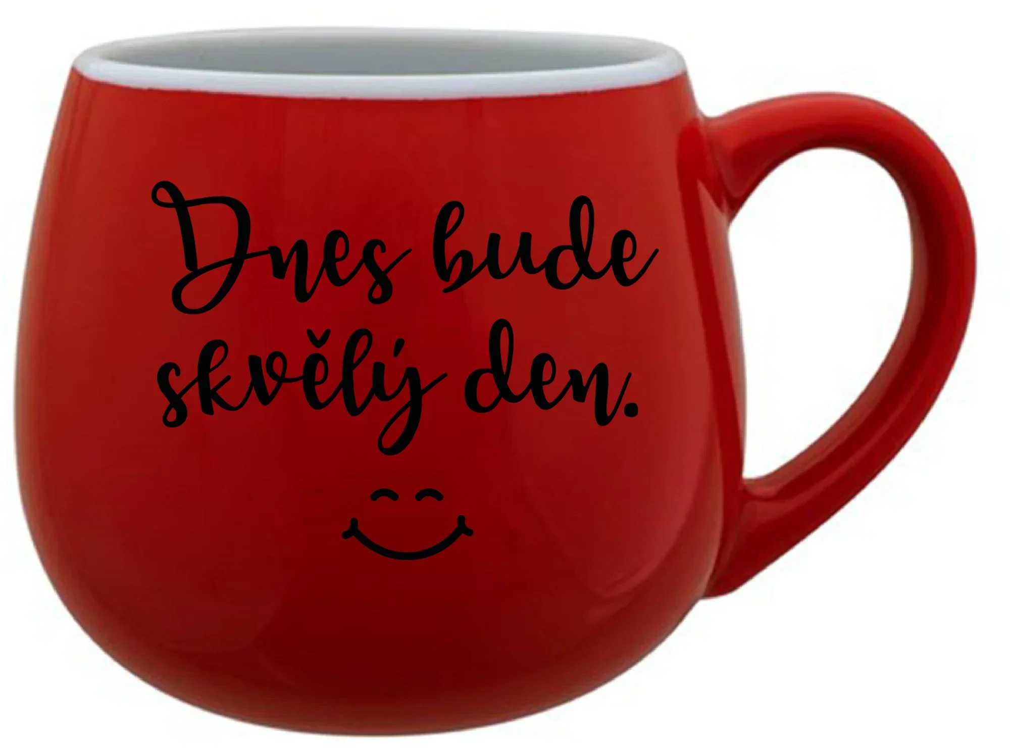 DNES BUDE SKVĚLÝ DEN. - červený keramický hrníček 300 ml