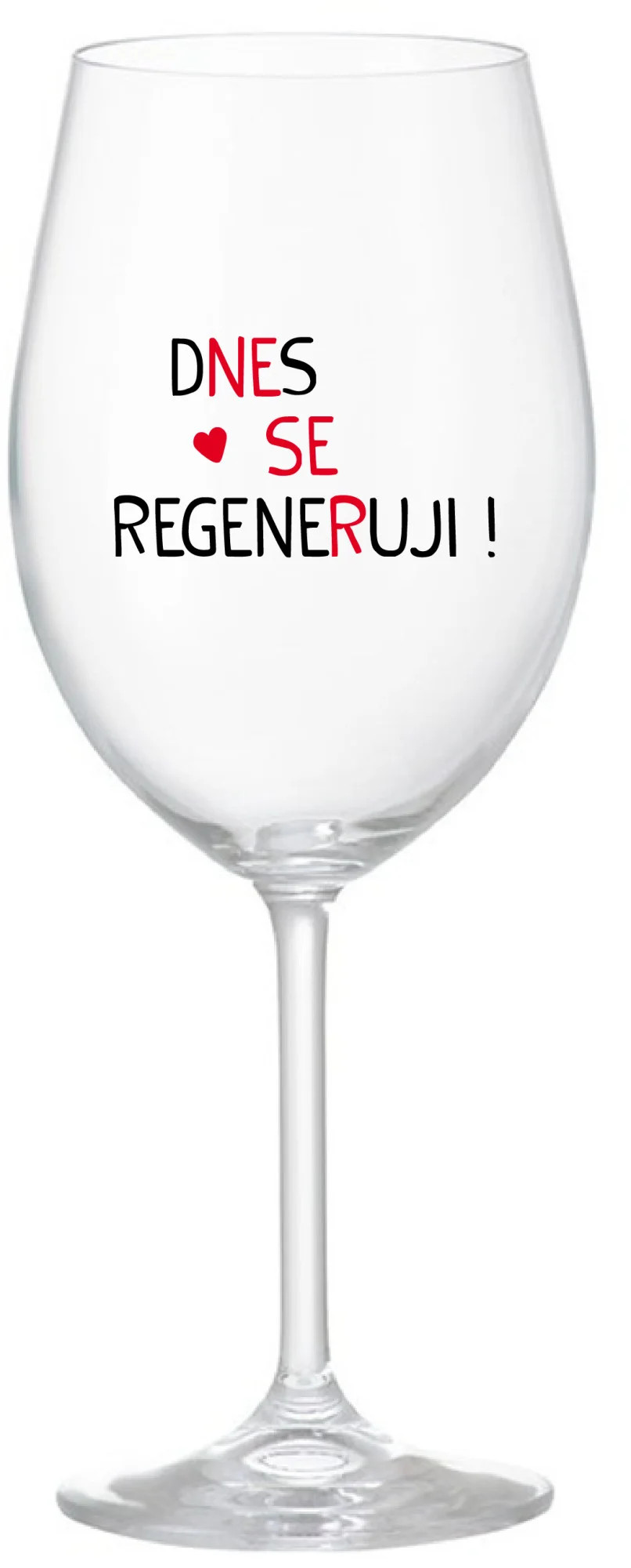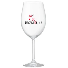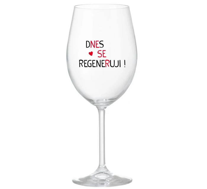Vinná čirá sklenice s originálním motivem DNES SE REGENERUJI! je krásným a osobitým dárkem, které ale využijete i Vy sami třeba ve chvílích, kdy si budete chtít zpříjemnit náročný den. Tyto originální vinné sklenice jsou totiž nejen pro výjimečné události, ale i pro běžné večery, které si chcete zpříjemnit sklenkou dobrého vína. Jistě proto potěší každého milovníka vína, i toho, kdo si umí svůj život vychutnat plnými doušky.