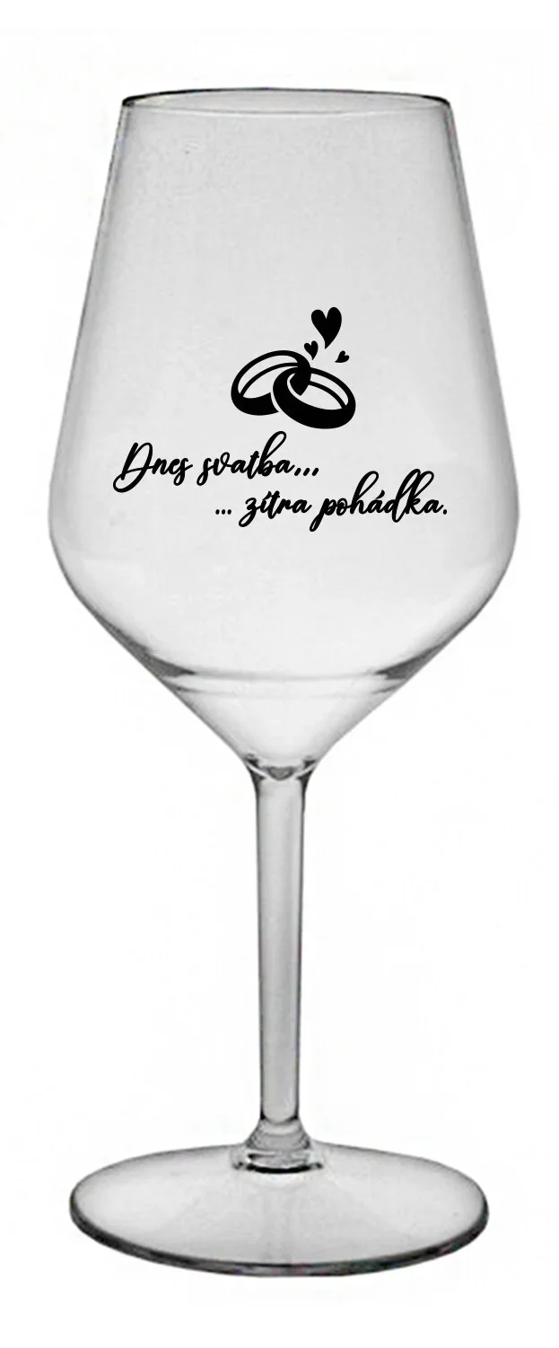 DNES SVATBA, ZÍTRA POHÁDKA - čirá nerozbitná sklenice na víno 470 ml