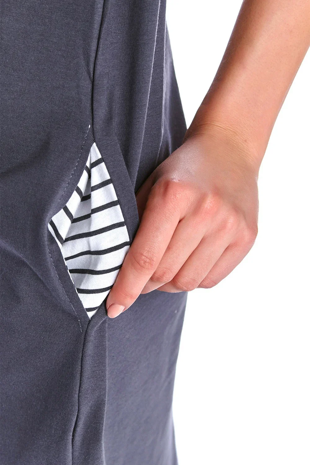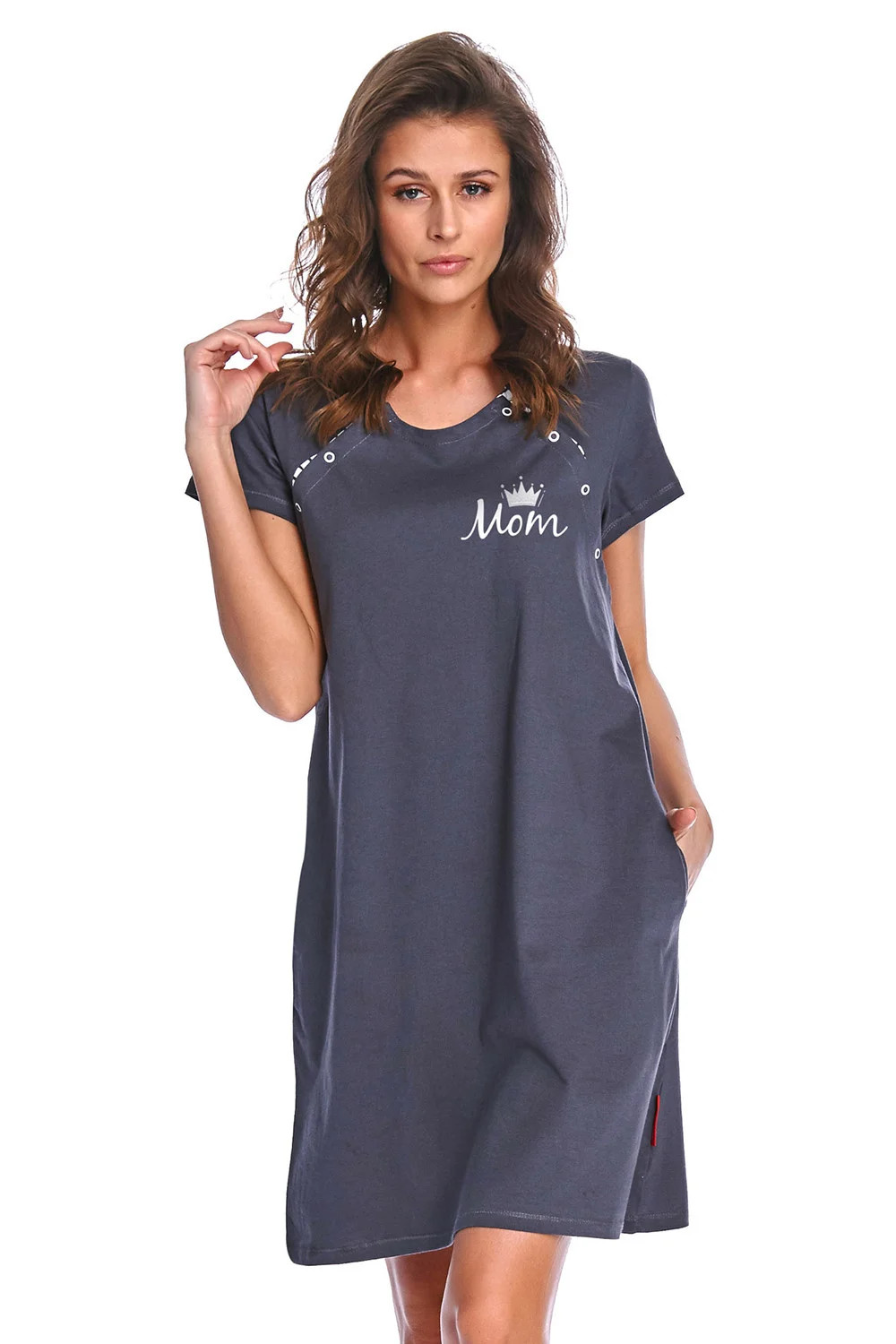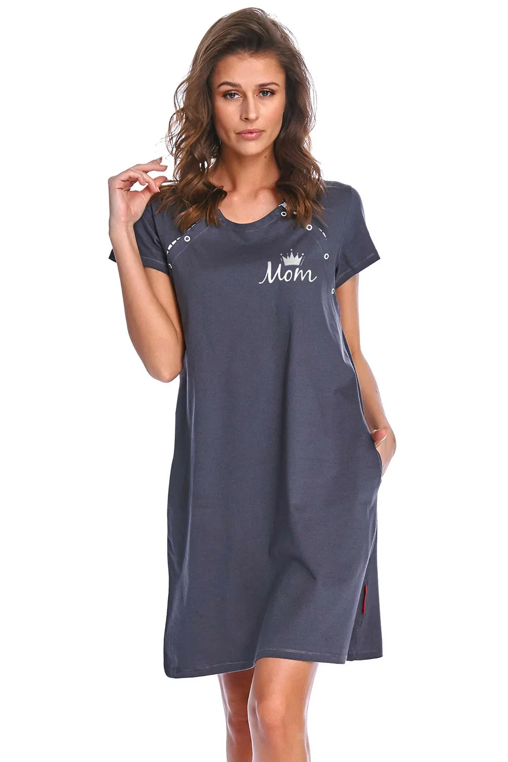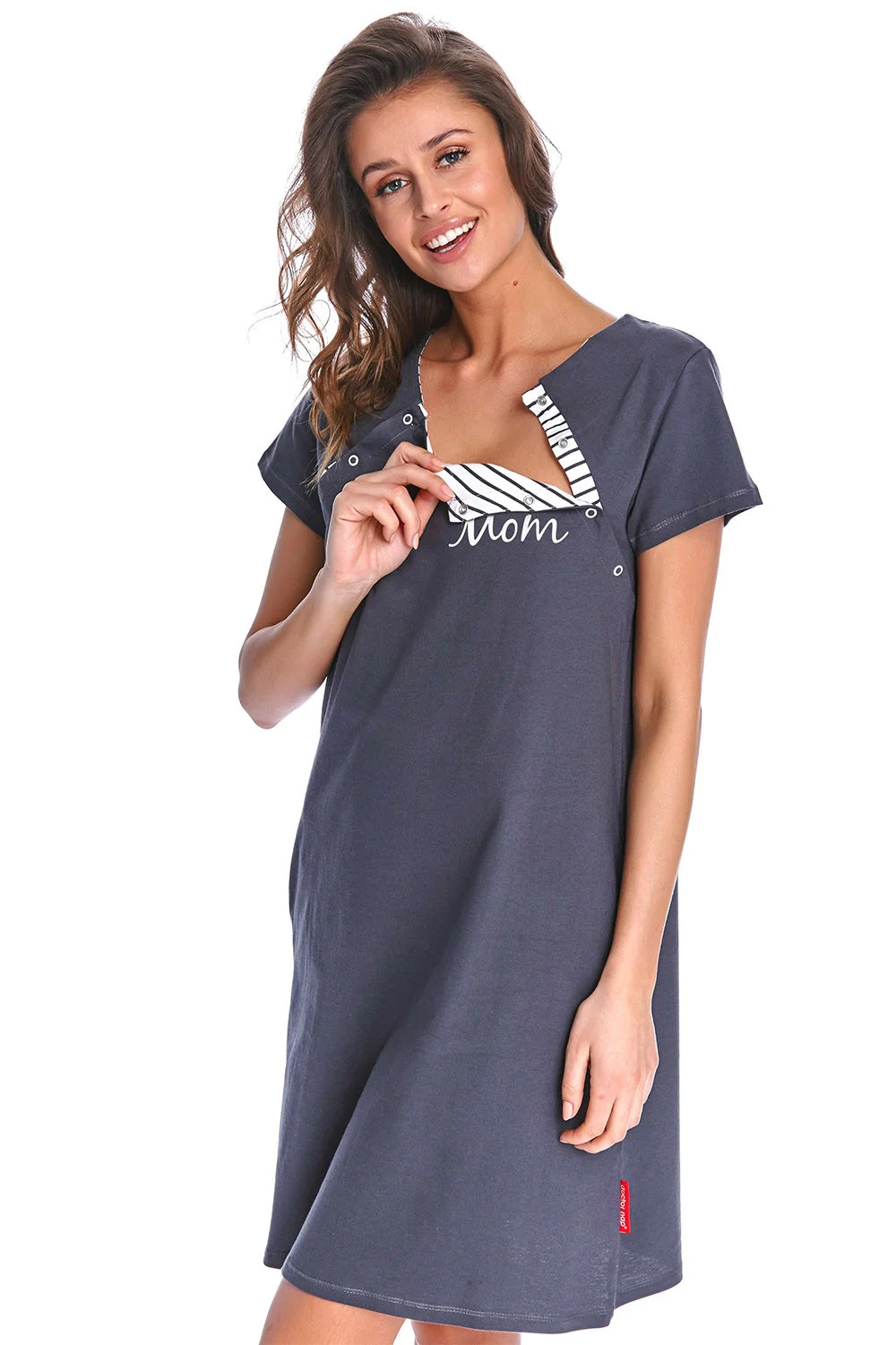 Značka Dn-nightwear. Model TCB.9992. Výrobek je vyroben ze 100% bavlny. Typ výstřihu: kulatý. Má kapsy. Výrobek pro ženy. Noční stolek se zapíná na patentky. Těhotenské oblečení. Délka rukávu: krátký.