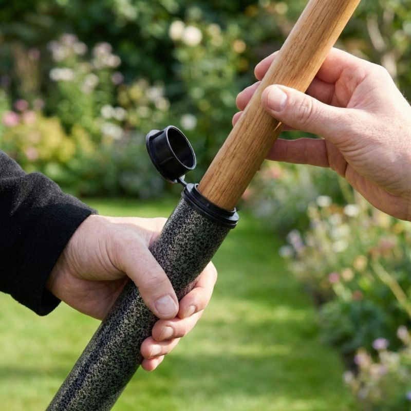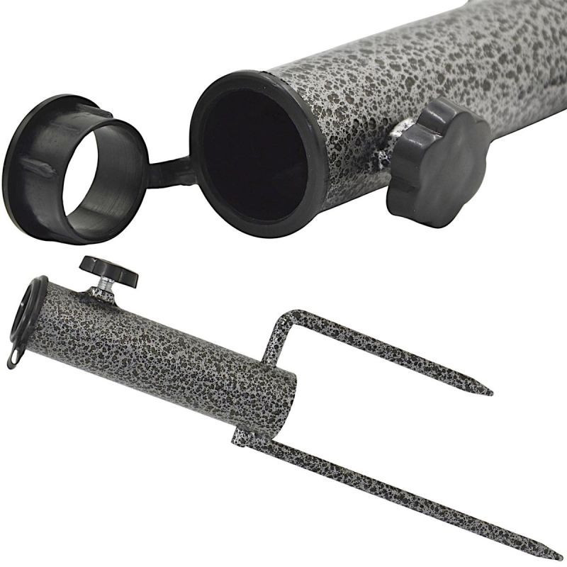 Baza - mocowanie umożliwia wygodny montaż parasola z uchwytem o różnej średnicy i na różnego typu podłożu, w piasku na plaży lub w ziemi nad jeziorem czy w ogrodzie. Nie potrzebujesz już specjalnej podstawy, aby zamontować swój parasol, wystarczy tylko wbić w podłoże stalową bazę i włożyć do niej parasol.